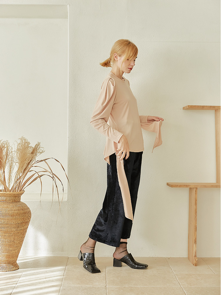 소매주름 드레이퍼리한 디테일